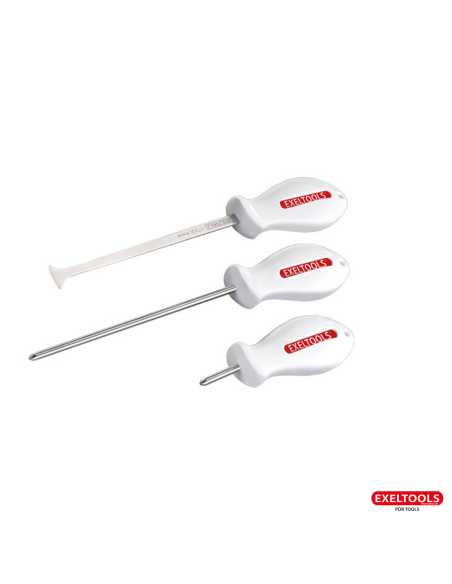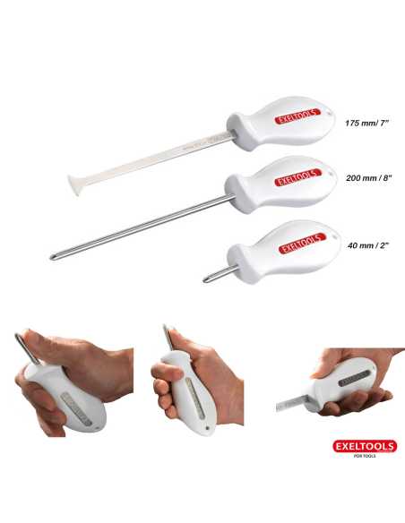 A universal tool for intensive use. Ergonomic polyamide handle covered with an antifouling coating. Stainless steel rod with structural hardening. Hardness HRC 44.