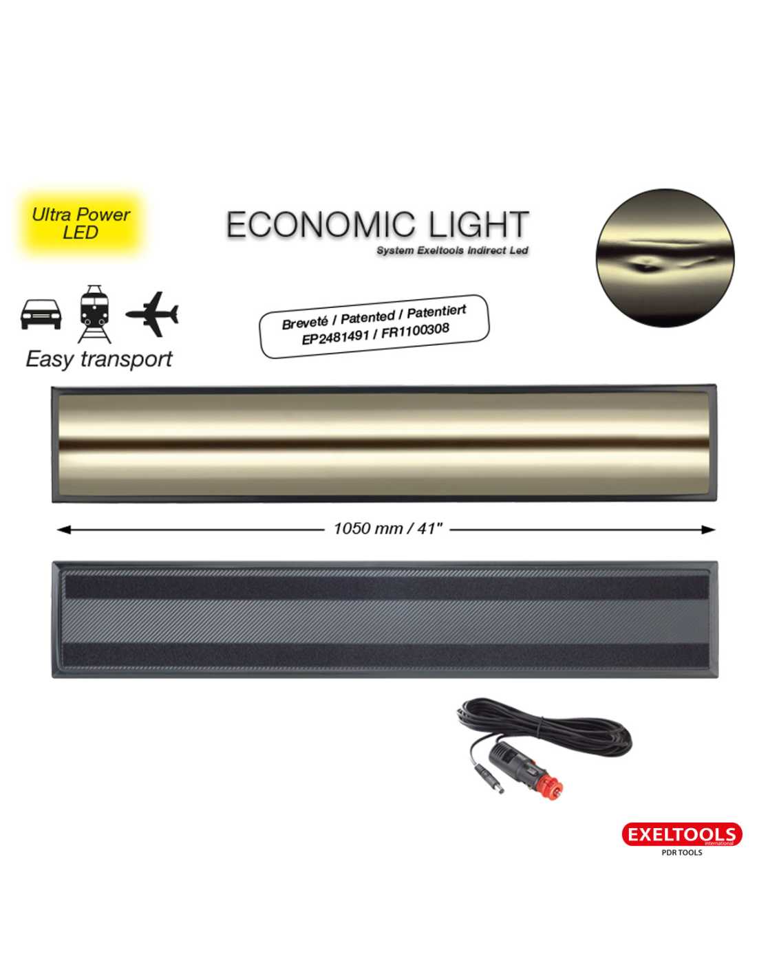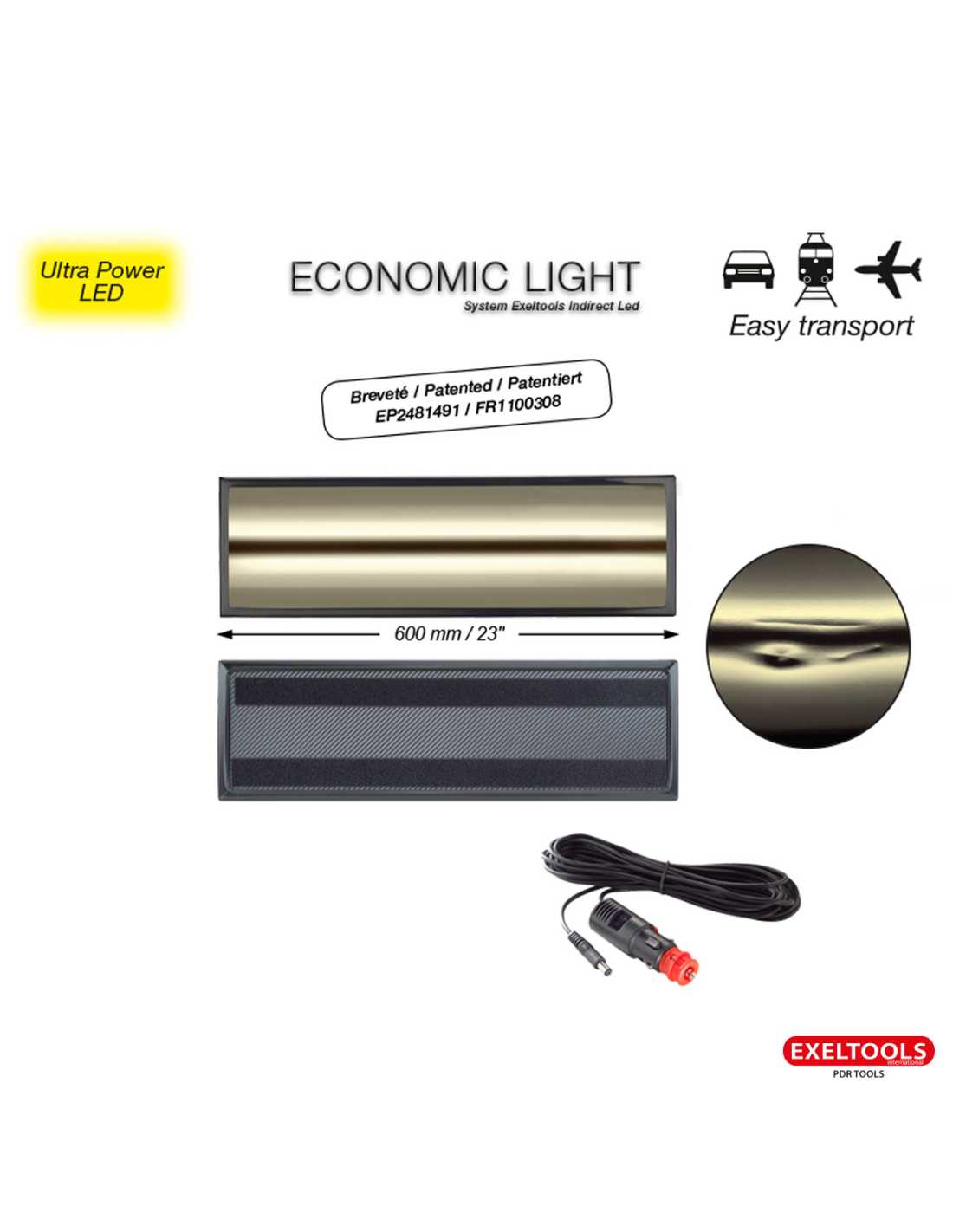 24" led, Light, strong and can be positioned with suction pads.